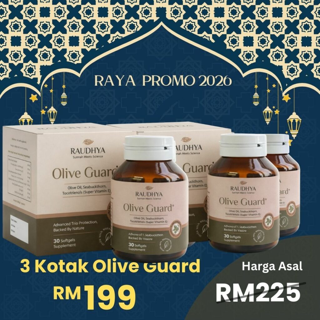 Raudhya OliveGuard+ Diperkaya Bahan Aktif Polyphenols, Tocotrienols (Super Vitamin E) & Omega Aktif Menyokong Kawalan Gula, Kolesterol & Tekanan Darah
